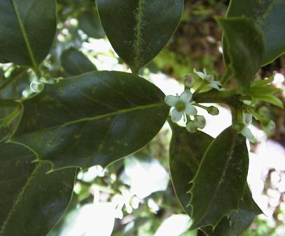 L’élément le plus caractéristique est sans conteste ses feuilles d’un beau vert luisant qui contrastent avec les baies corallines. Mais, attention, le Houx ne se laissera pas cueillir impunément pour orner vos tablées de Noël ; ses rangées d’épines acérées repousseront plus d’un sécateur, mauvais esprits, sorcières et autres jeteurs de sorts ! Soyez rusés, le Houx présente deux types de feuilles : celles exposées au soleil sont épineuses contrairement à celles situées à la base de l’arbre ; malheureusement, c’est souvent là où il y a moins de baies ! Et encore, il faut avoir de la chance, car c’est une espèce dioïque, avec des individus mâles et femelles, et seules les femelles ont les boules !